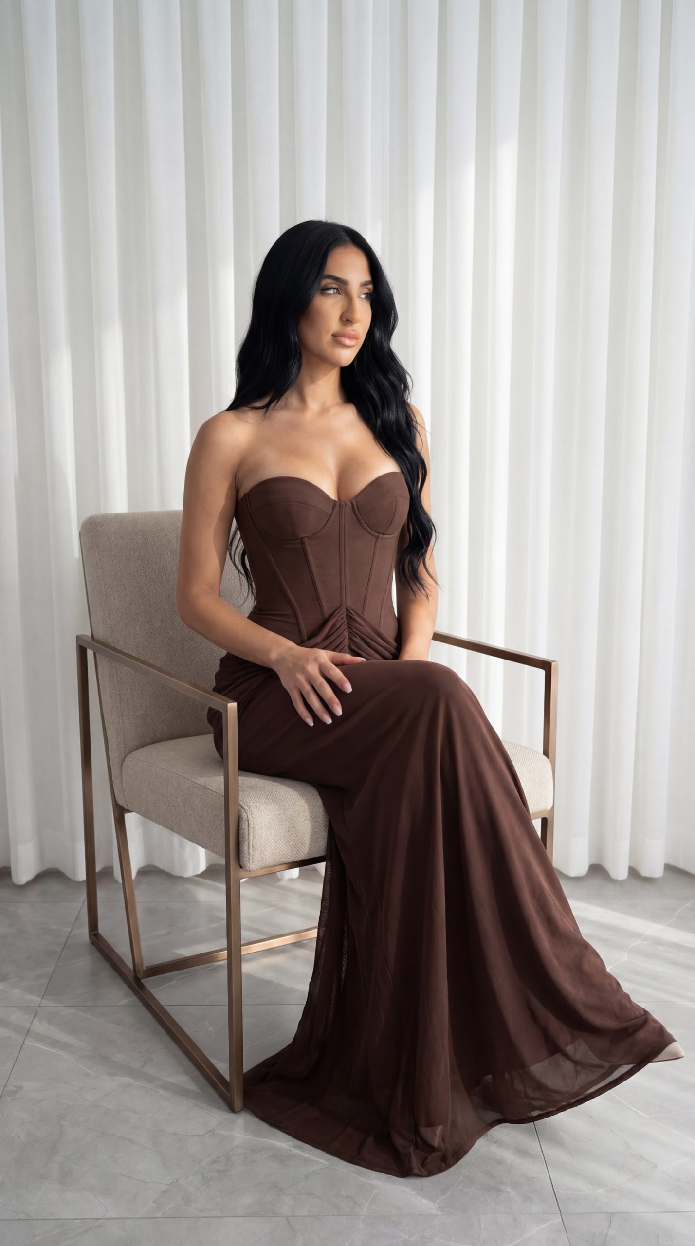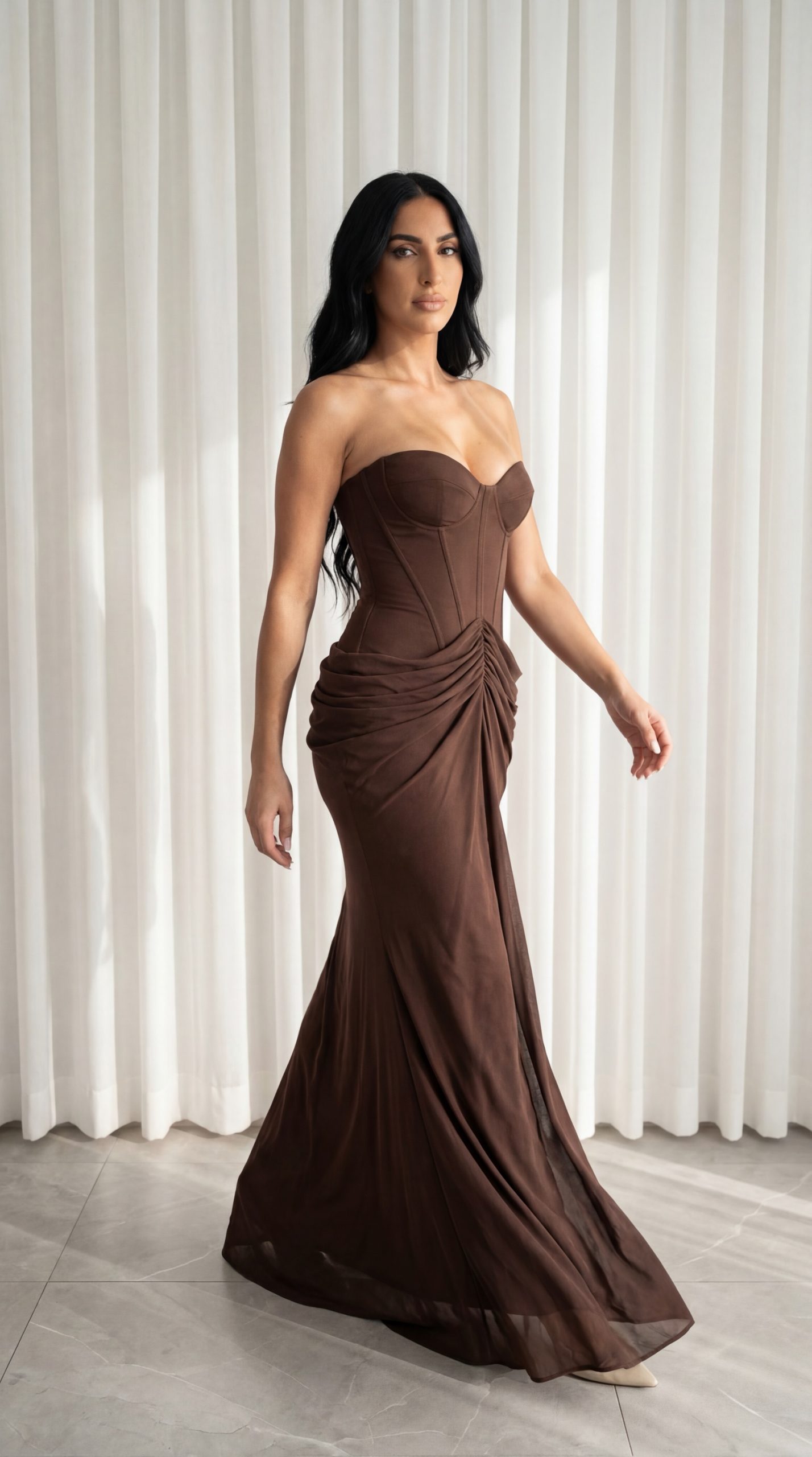 עמוד הבית שמלות מקסי שמלת טריו חום