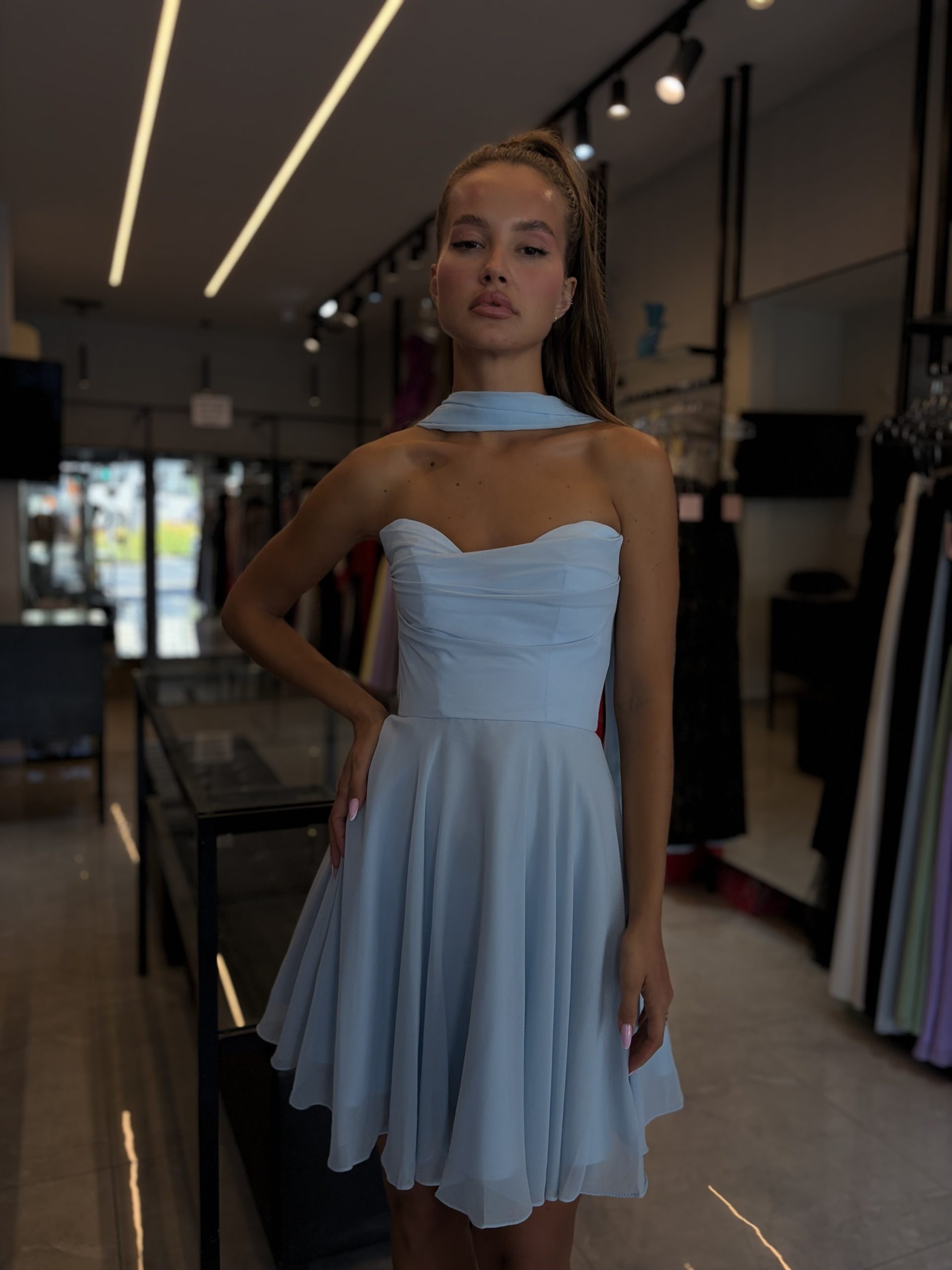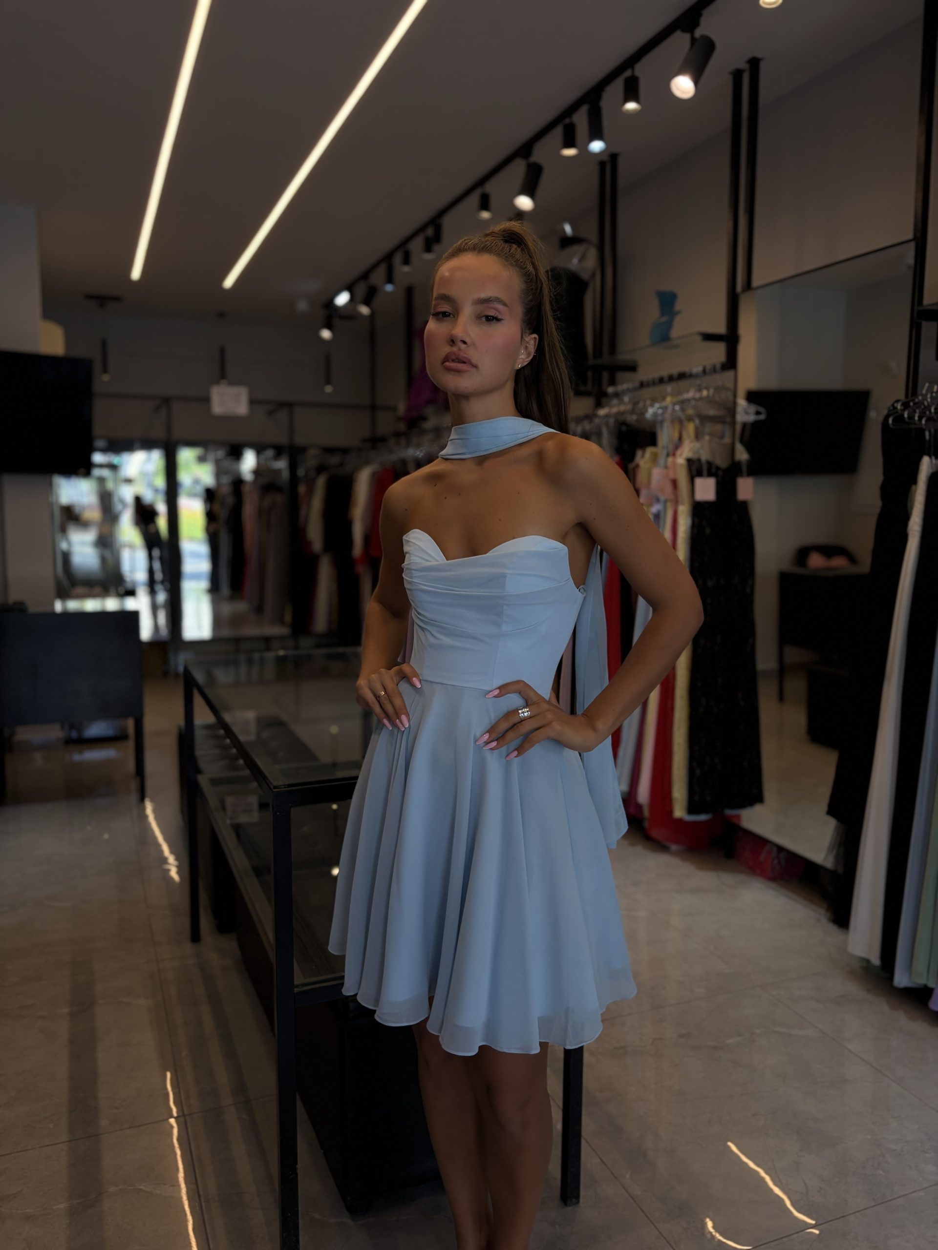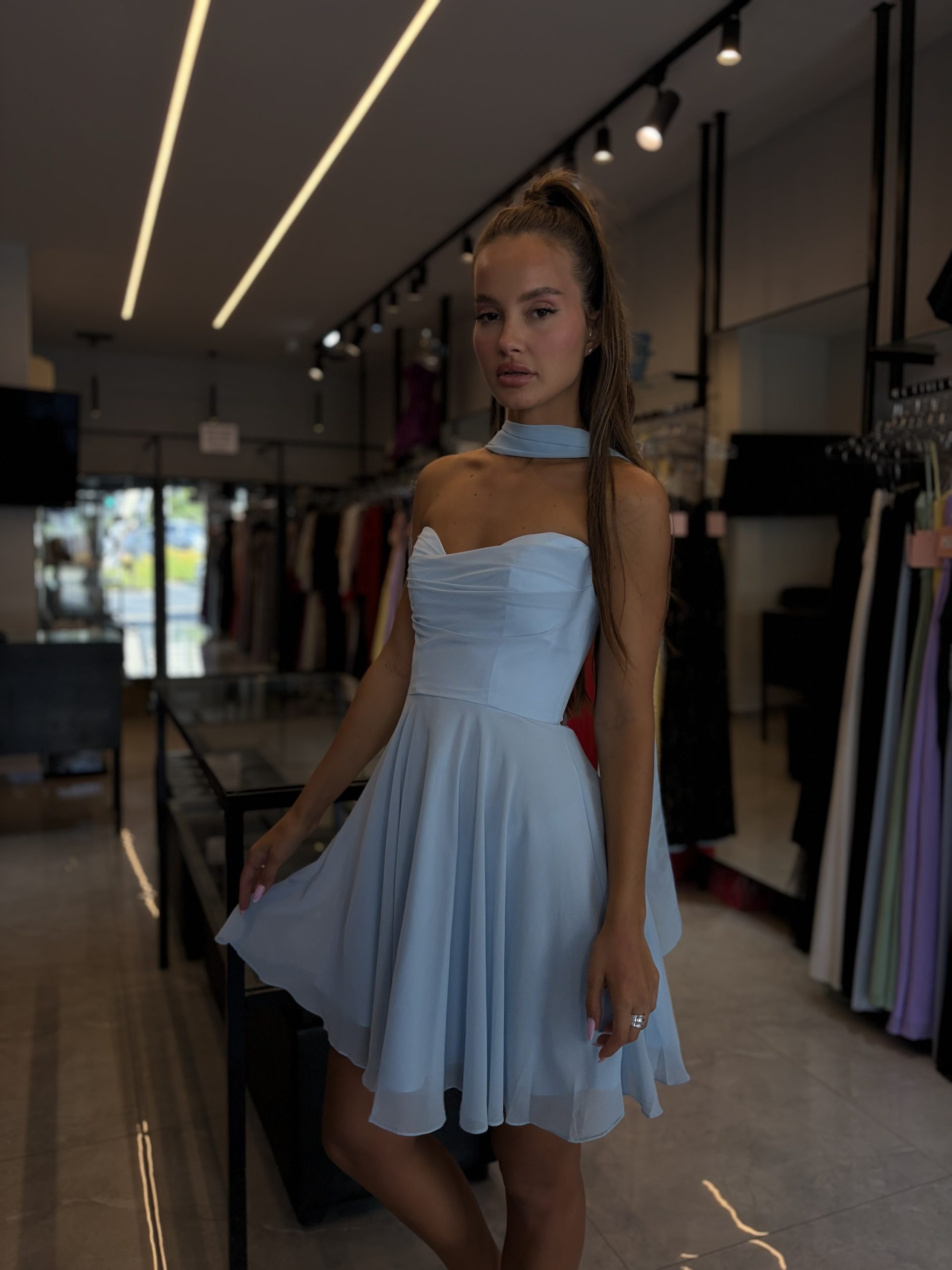עמוד הבית שמלות מיני שמלת ערב אפריל מיני תכלת