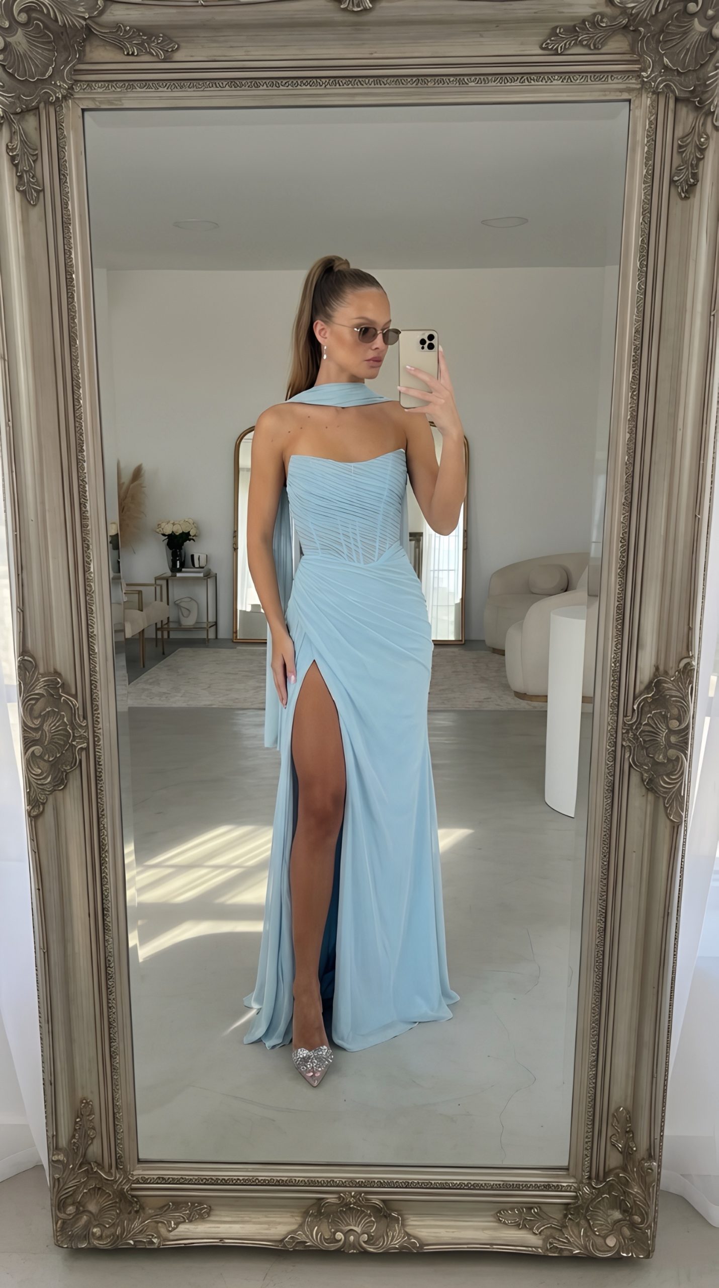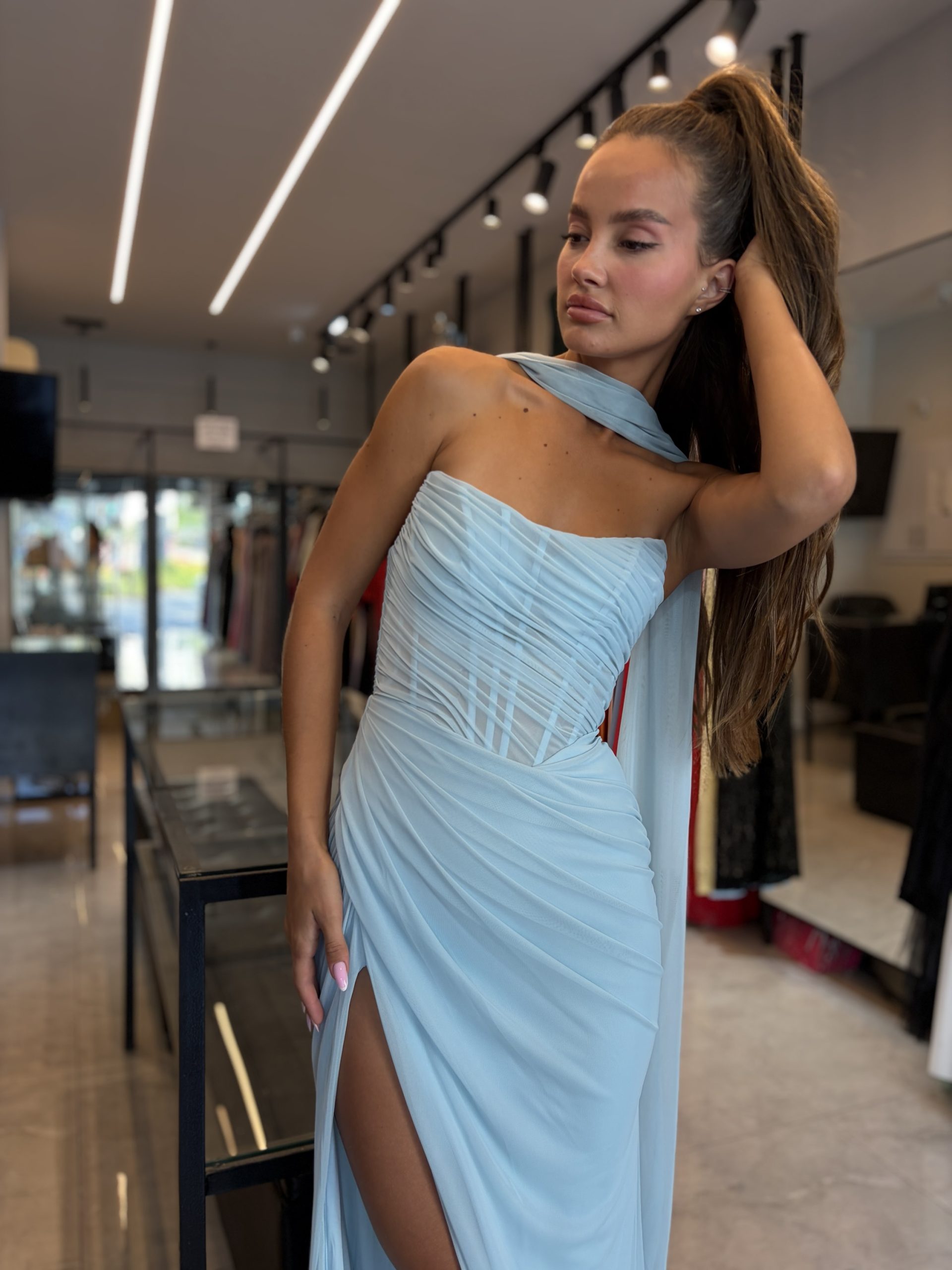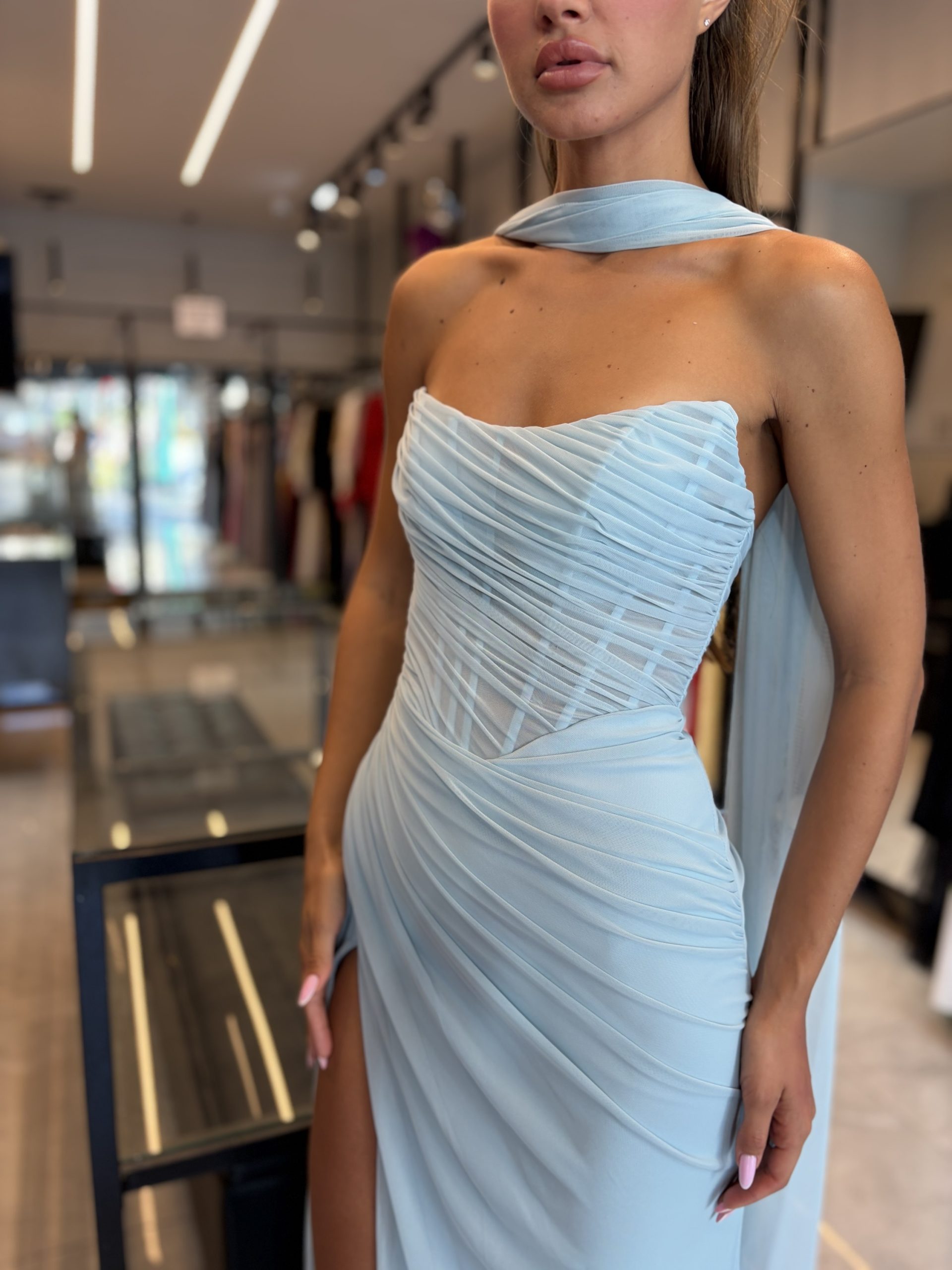 עמוד הבית שמלות מקסי שמלת ערב לידור תכלת