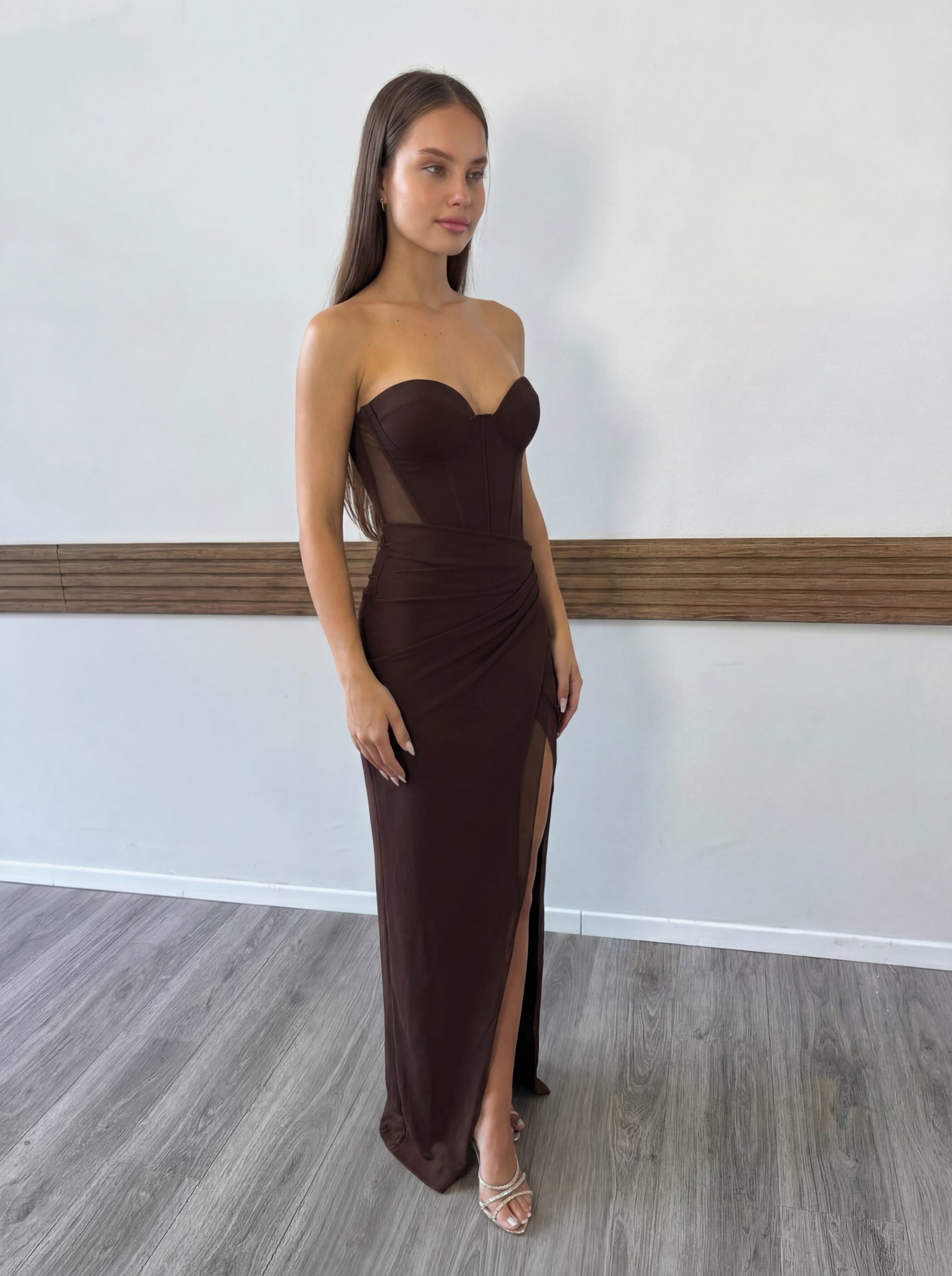 עמוד הבית שמלות מקסי שמלת ערב מוריאל חום