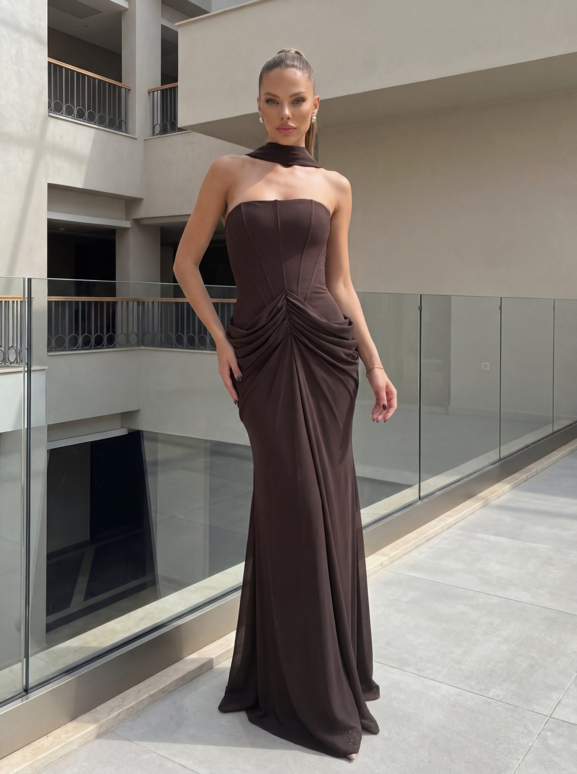 עמוד הבית שמלות מקסי שמלת ערב נארס חום