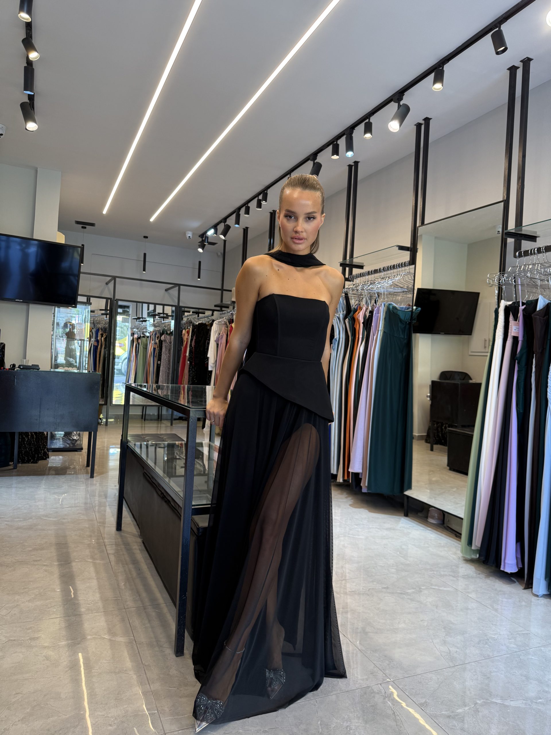 שמלת מחוך מיני בשילוב שיפון ארוכה