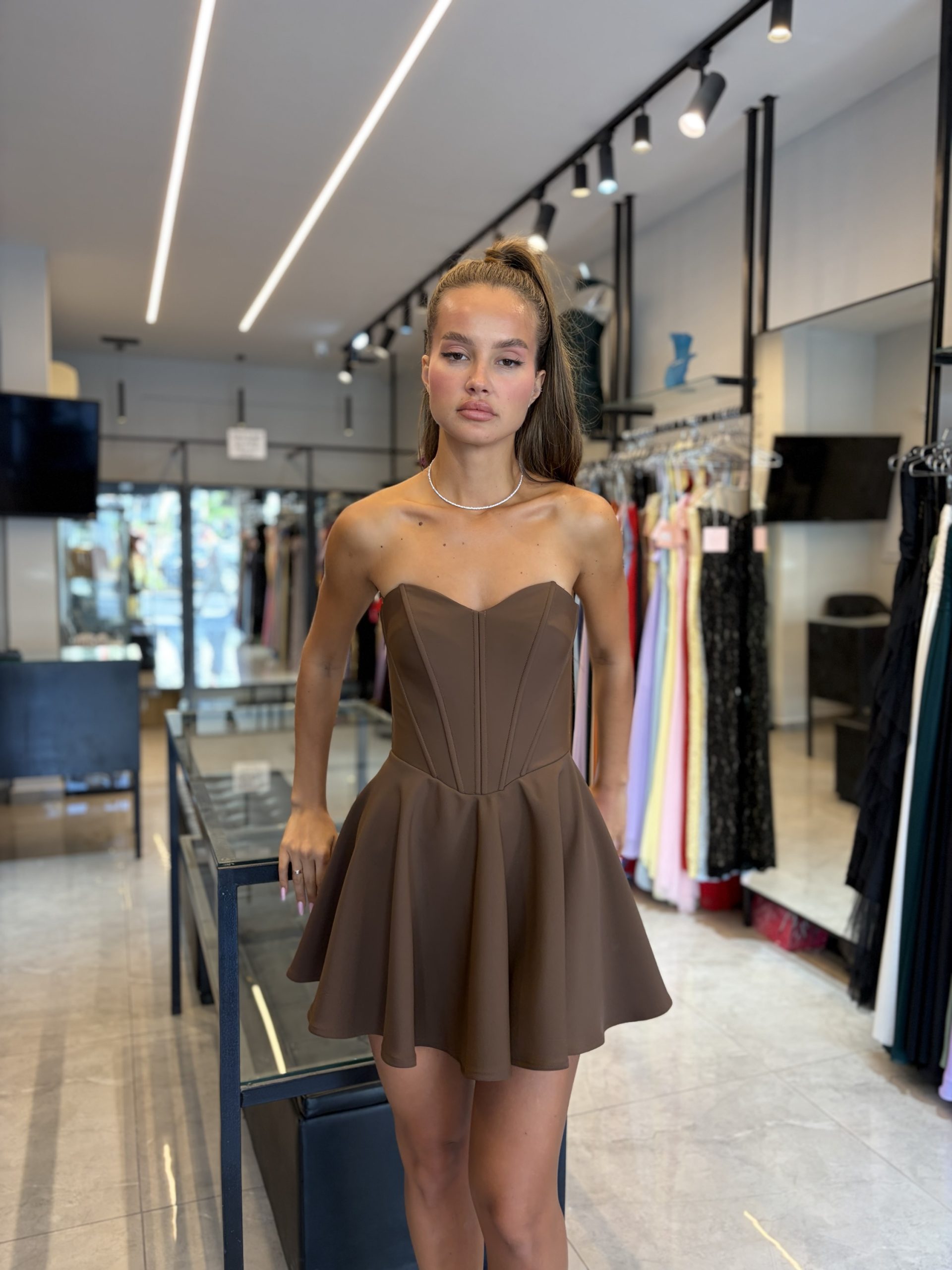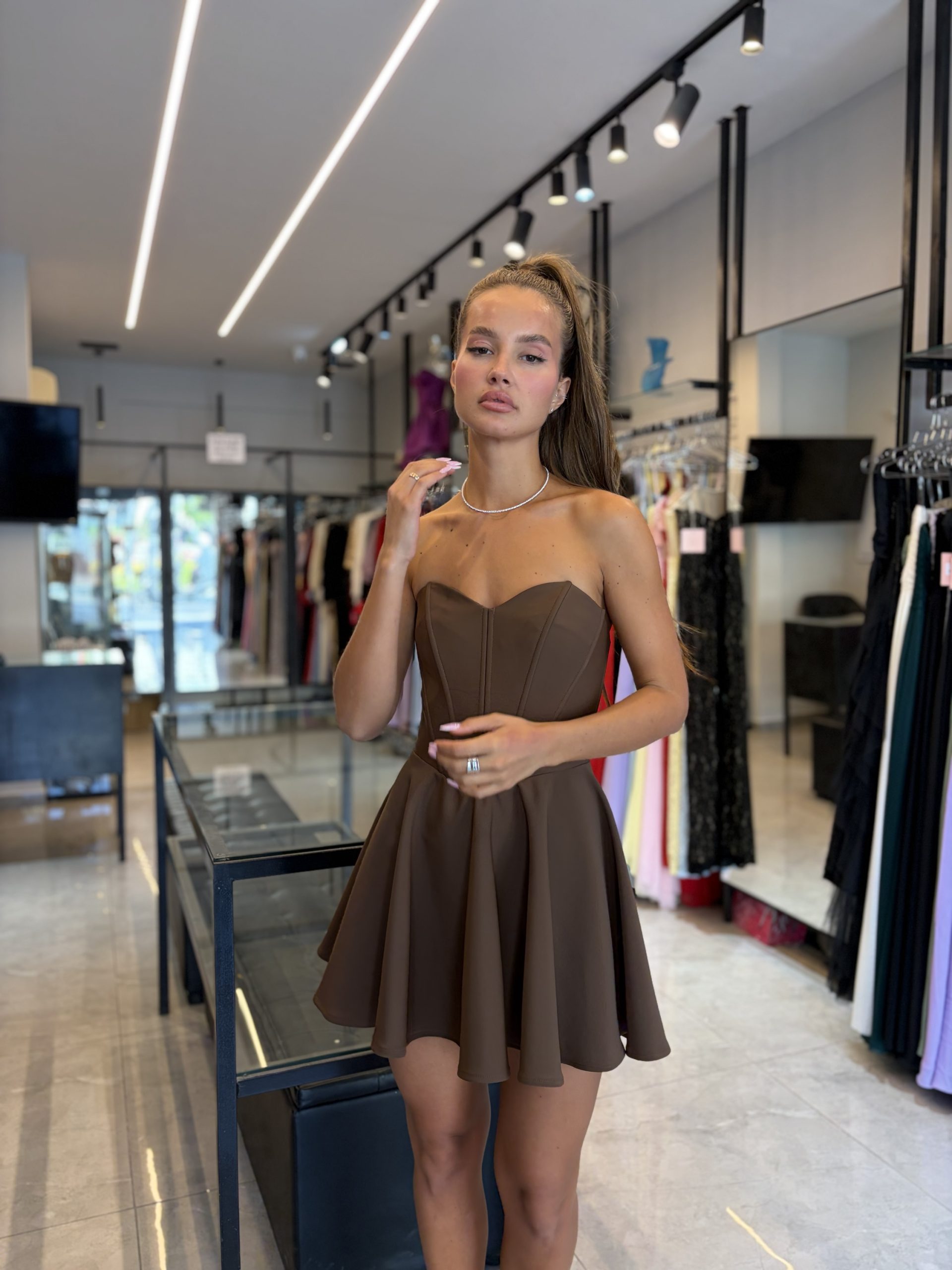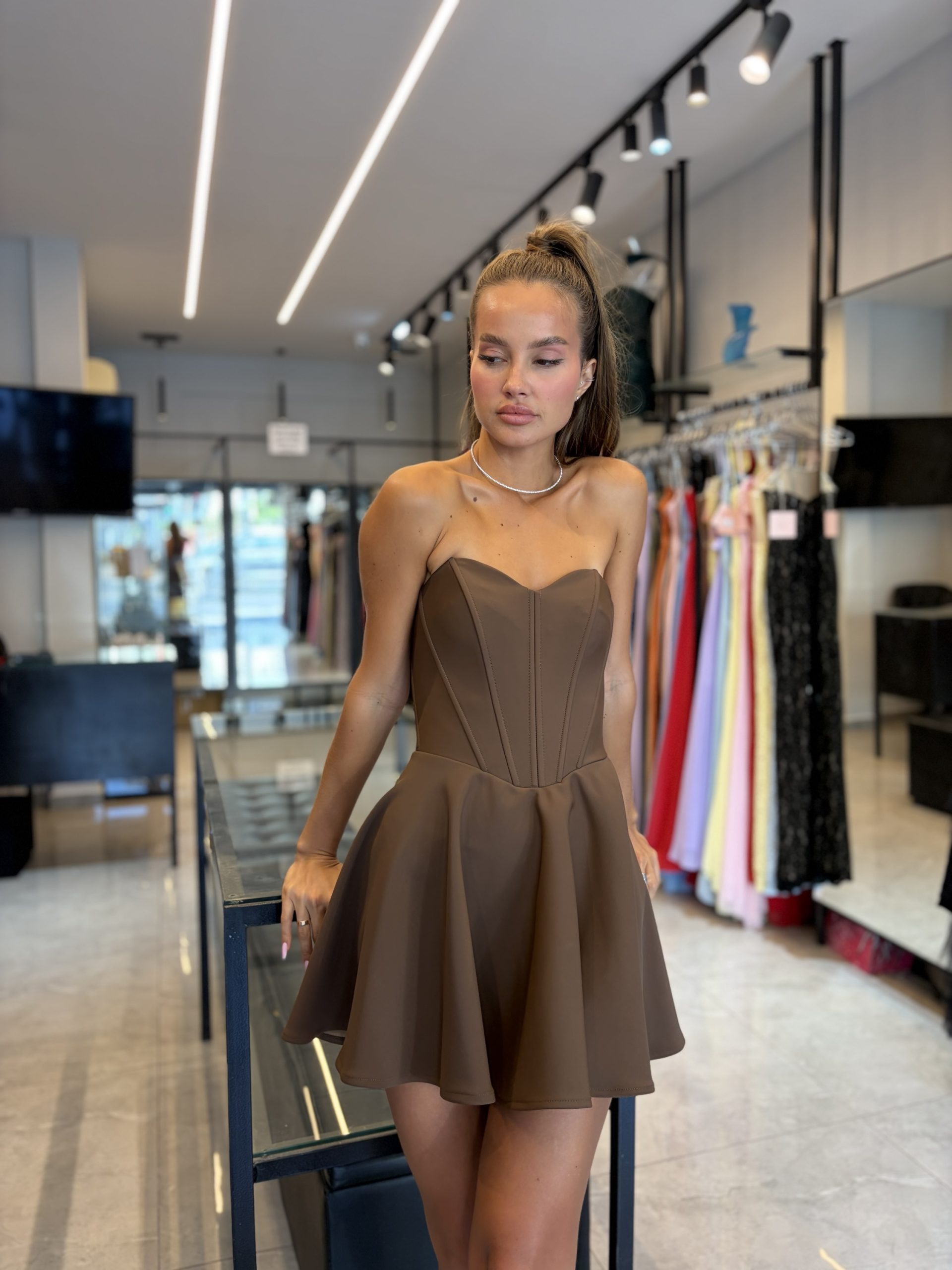 עמוד הבית שמלות מיני שמלת ערב עמליה חום בהיר