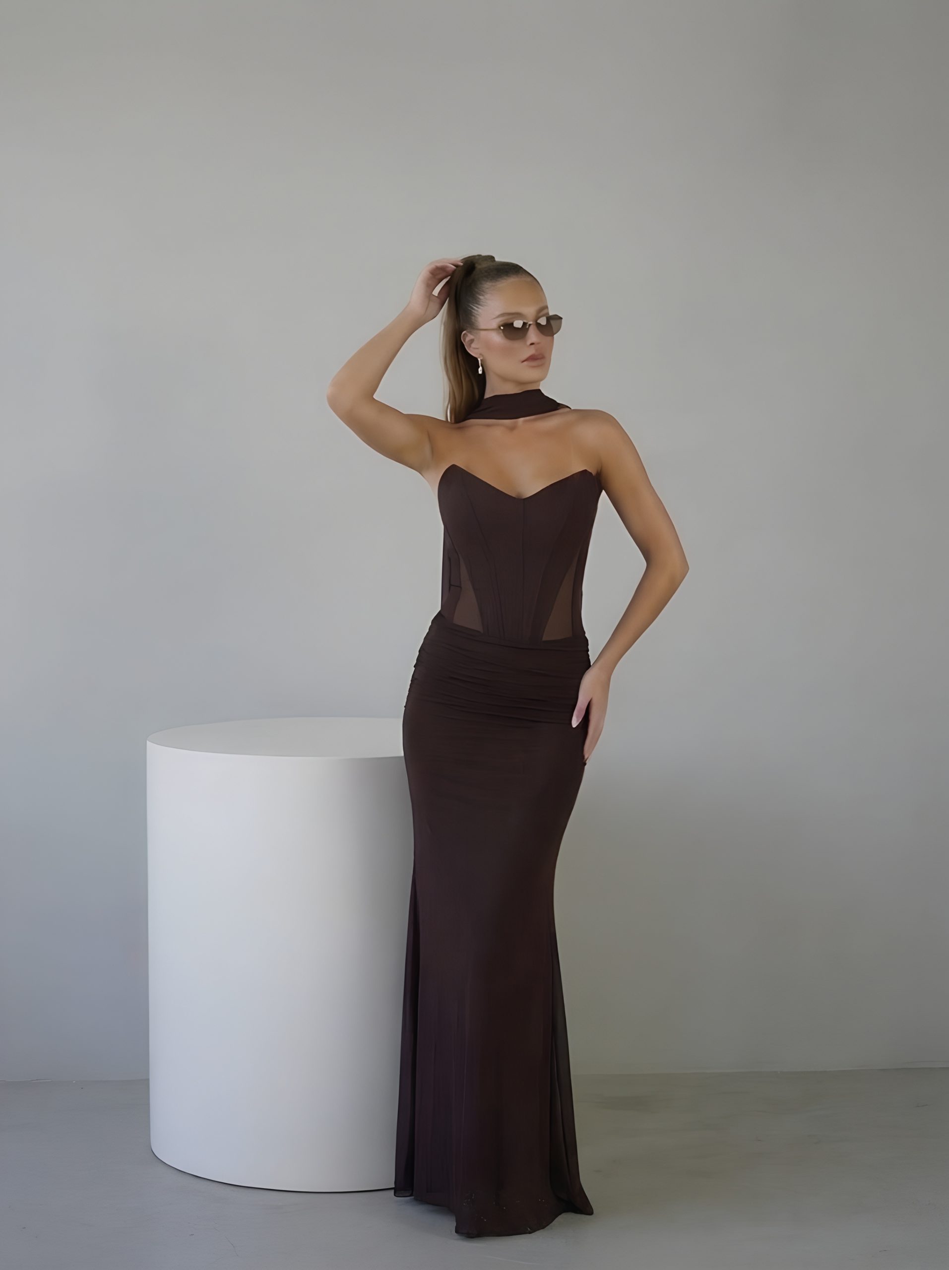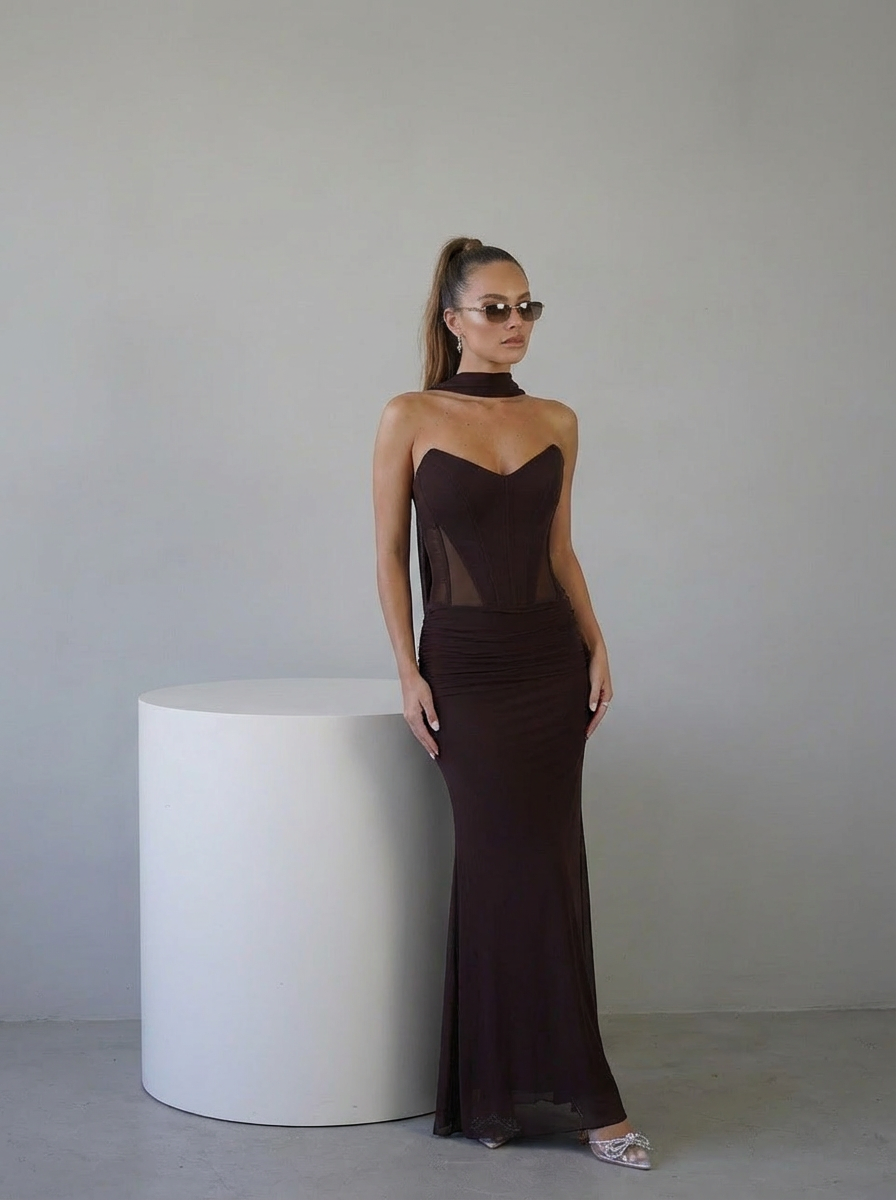 עמוד הבית שמלות מקסי שמלת ערב שילת חום